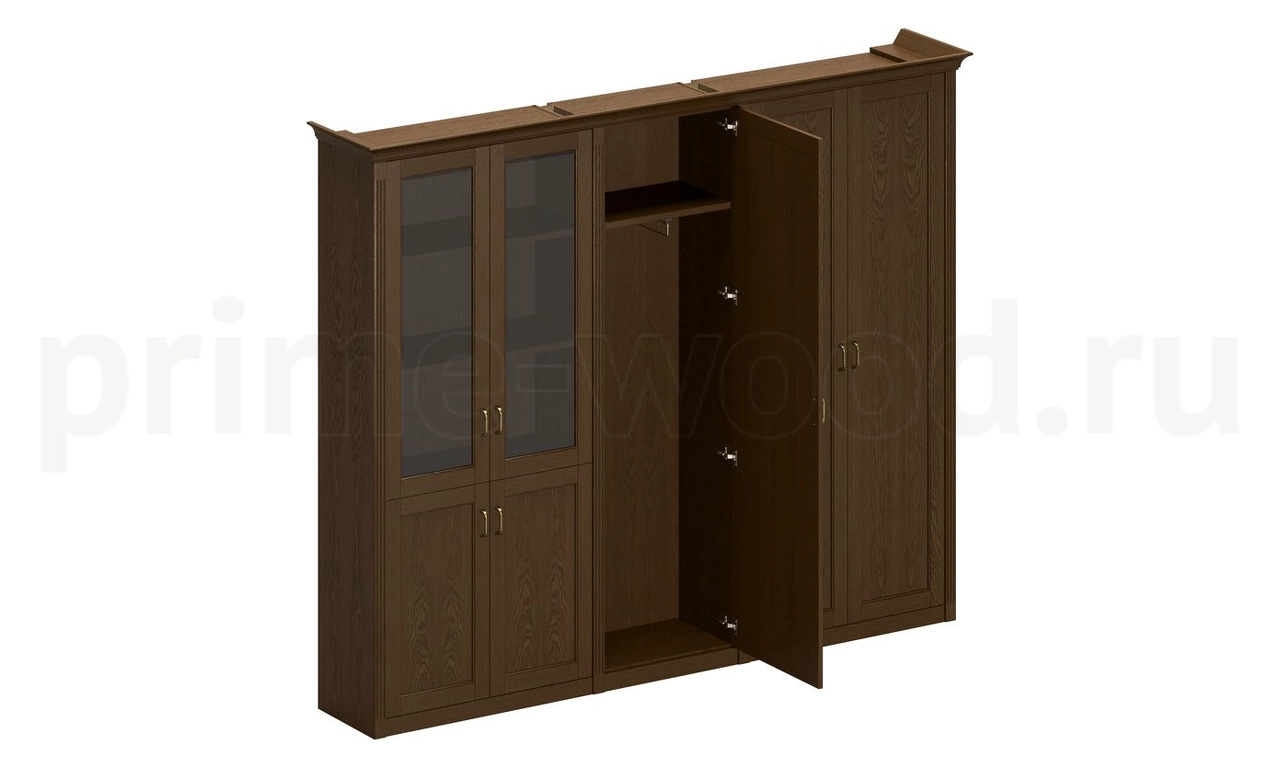 Шкаф высокий комбинированный (2 для документов 1 из 2 со стеклянными дверями + узкий для одежды) ПС 347 ДМ